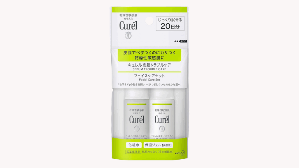 キュレル 皮脂トラブルケア 20日間トライアルセットは、皮脂によるテカリと乾燥を同時にケアしたい方に向けたコンパクトかつ実用的なセットです。手軽に試せて旅行にも便利なため、敏感肌でスキンケアに迷う方は一度使ってみる価値があると言えます。