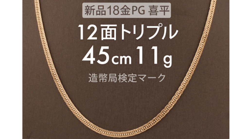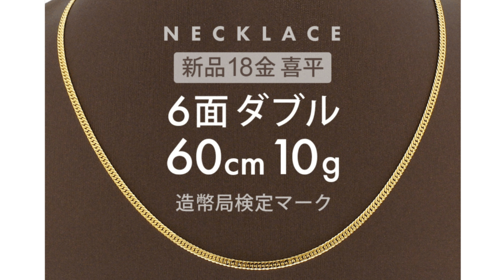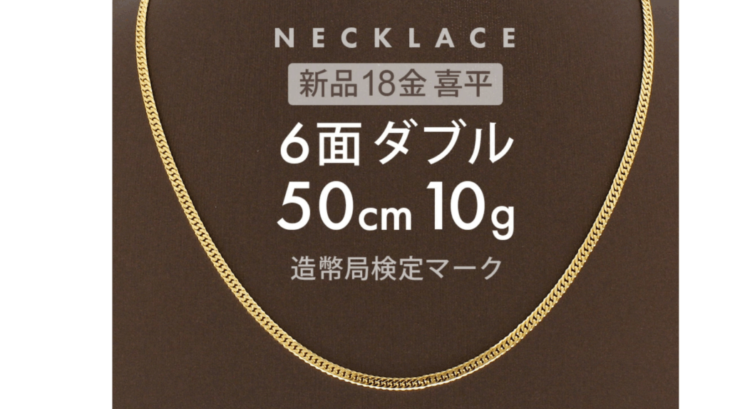 さらに詳しく、素材・相場・リセール・おすすめモデルなどを体系的に知りたい方は、「喜平ネックレス購入前のガイドブック」をぜひご覧ください。また、別記事で、「その他の価格帯ごとの相場や重さ」もご参照ください。